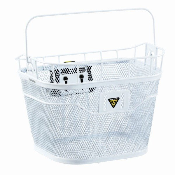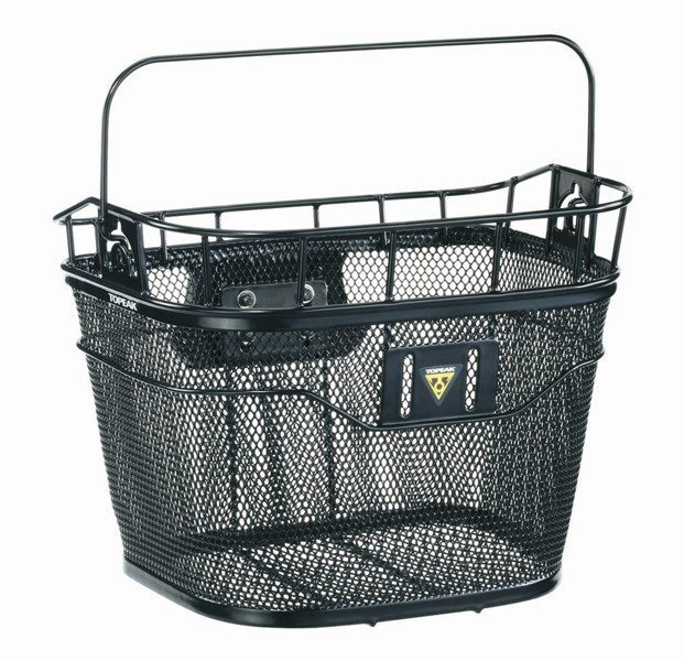 Wytrzymały, montowany na kierownicę metalowy kosz na zakupy, krótkie wycieczki po mieście.