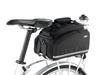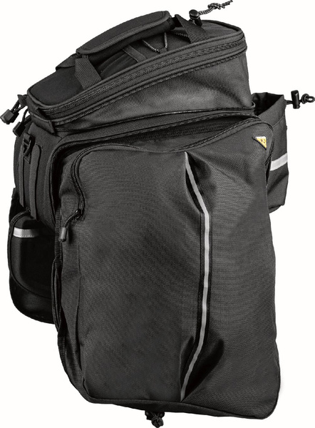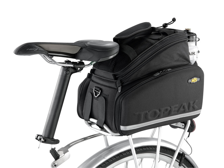 Największa z naszych toreb. Olbrzymia przestrzeń bagażowa z powiększaną górną częścią, bocznymi sakwami i uchwytem na bidon, montowana do dowolnego bagażnika za pomocą rzepowych pasków. Formowane panele boczne w połączeniu z elastyczną tkaniną o gęstości 600 denierów tworzą półsztywną, odporną na warunki pogodowe torbę na bagażnik. Dzielona komora główna i panele boczne powiększają się, zapewniając dodatkową pojemność. Tylny uchwyt na bidon pozwala przewozić więcej wody podczas dłuższych podróży. Mocowane za pomocą zintegrowanych pasków rzepowych. Użycie bocznych sakw wymaga stelaża z przymocowanymi ramami bocznymi lub tradycyjnego bagażnika, aby zapobiec kontaktowi sakw z tylnym kołem.